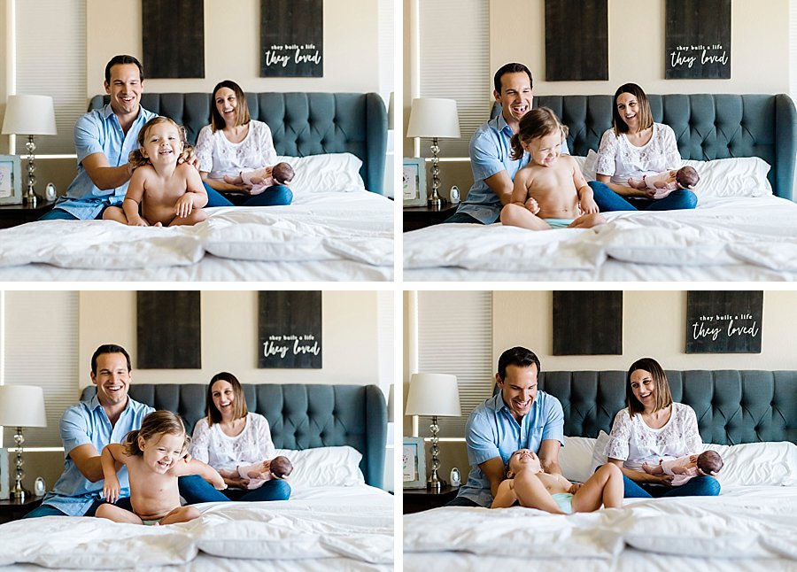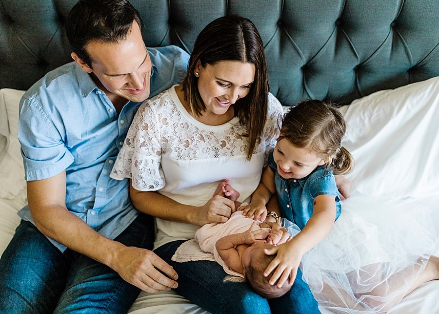 It was so special spending the morning with this precious family. While mom was getting ready with baby Ava, I was able to photograph and play with Sienna in her adorable room. Before Ava’s lifestyle newborn session, I asked mom and dad to share with me some special activities Sienna likes to do with them. Reading together was the top activity along with riding her bike, playing golf and wrestling with her dad! Another family activity is singing together. We’re not talking about traditional kids songs here. We’re talking the Beatles!
